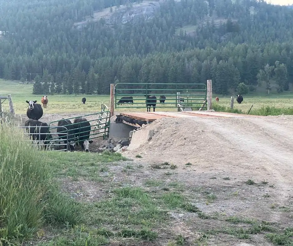 First, cattle could only reach this part of the ranch by crossing directly through the creek, which runs the risk of degrading water quality downstream through erosion and nutrient pollution. Pairing the bridge with a riparian buffer zone will help achieve DEQ’s goal of reducing nutrient loads in the watershed.