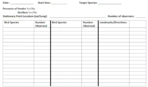 - To record your observations, fill out an individual checklist for each survey point, pictured below: