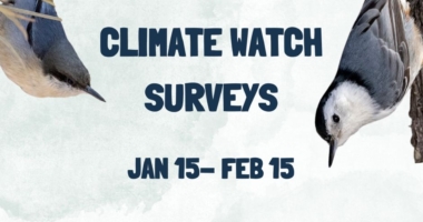 It’s that time again! Audubon’s Winter Climate Watch program is back from January 15 to February 15, 2026. Each survey includes 12 short point-counts, recording observations with three target species: Pygmy Nuthatch, Red-breasted Nuthatch, and White-breasted Nuthatch.